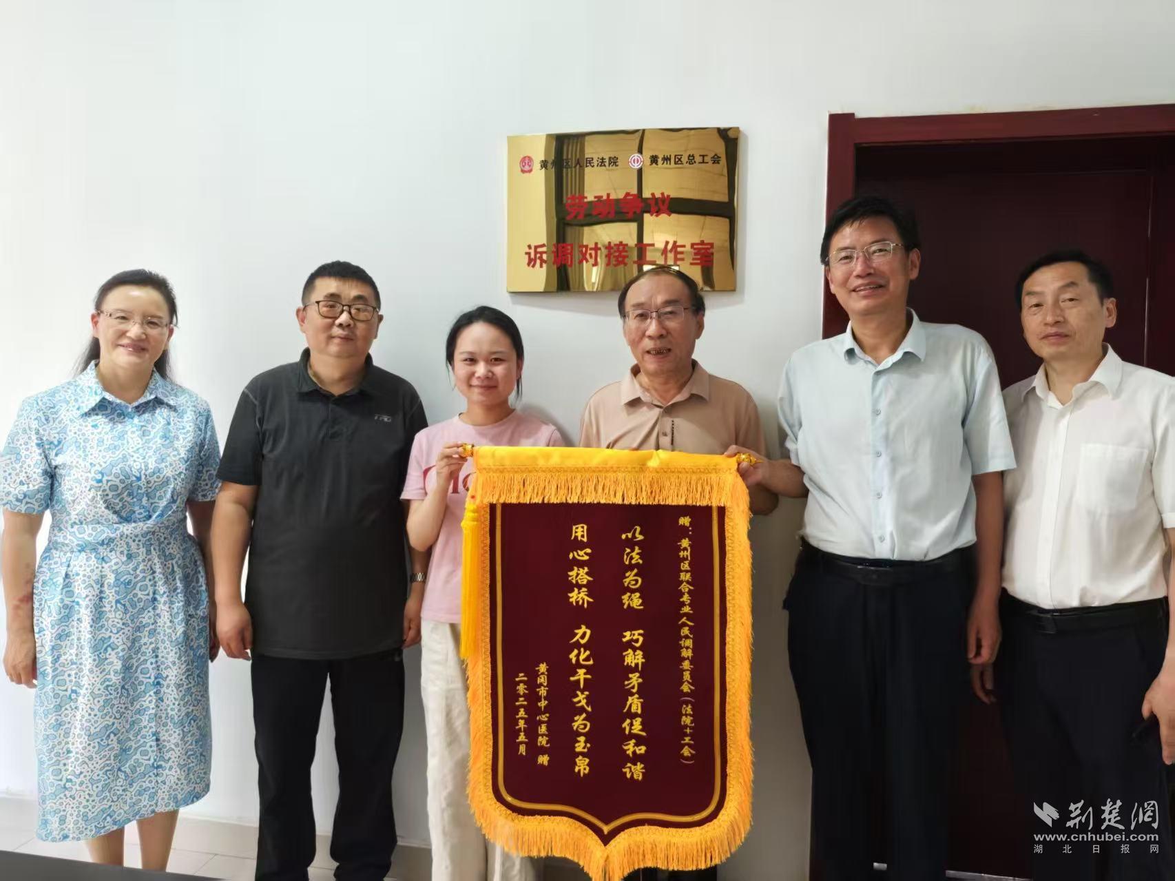 2025年5月,黄冈市黄州区“法院+工会”劳动争议调解工作室成功化解一起多年积案,双方当事人向工作室赠送锦旗