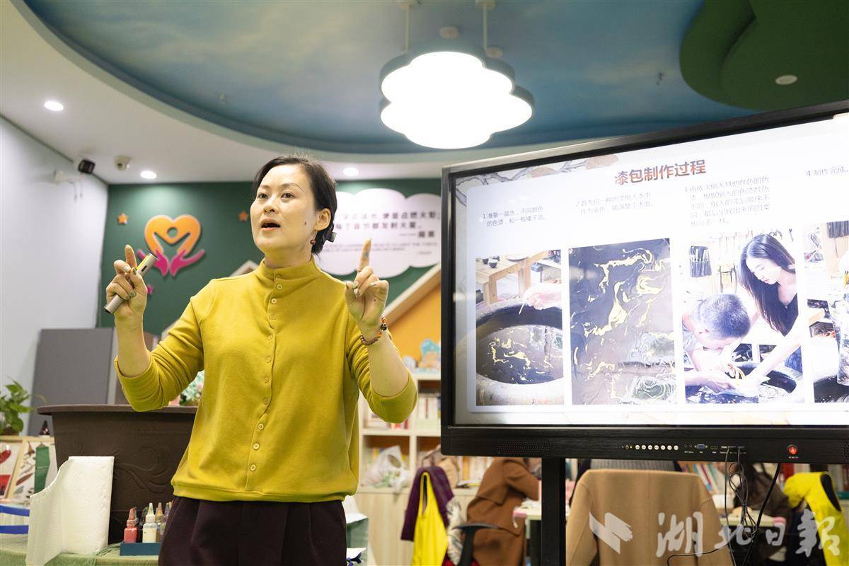 非遗老师向社区居民和留学生介绍大漆工艺。