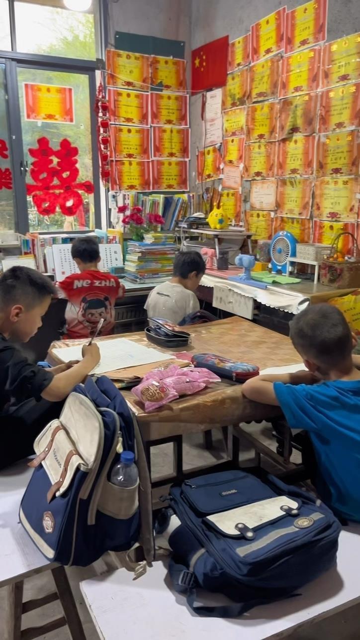 在湖南省娄底市新化县科头乡的一座山坡上,72岁奶奶曾美云家的墙上贴满了8个孙子孙女的奖状,她还跟着孩子们学习乘法和英语,每个孙辈拿到奖状她都会拿出20元予以奖励。