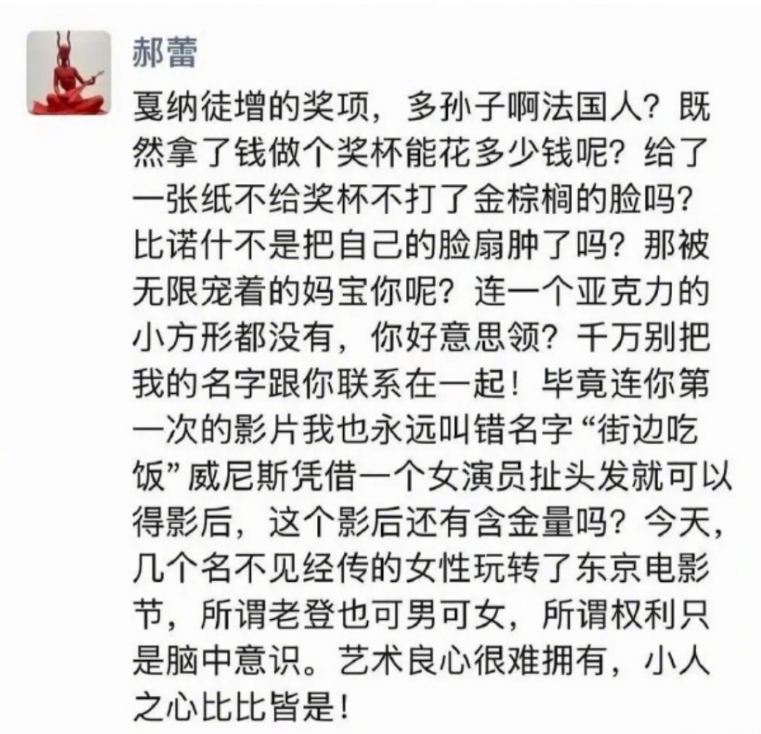 11月7日,一张网传为郝蕾朋友圈的截图,引爆“奖项运作”传闻。