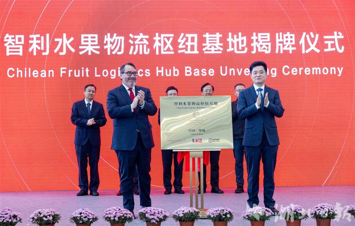 11月7日,“智利水果物流枢纽基地”在鄂州花湖国际机场揭牌。