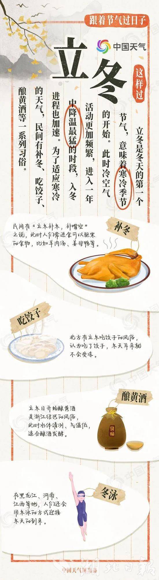 11月8日:阴天转小雨,偏北风3到4级、阵风5到6级,气温14~19℃;