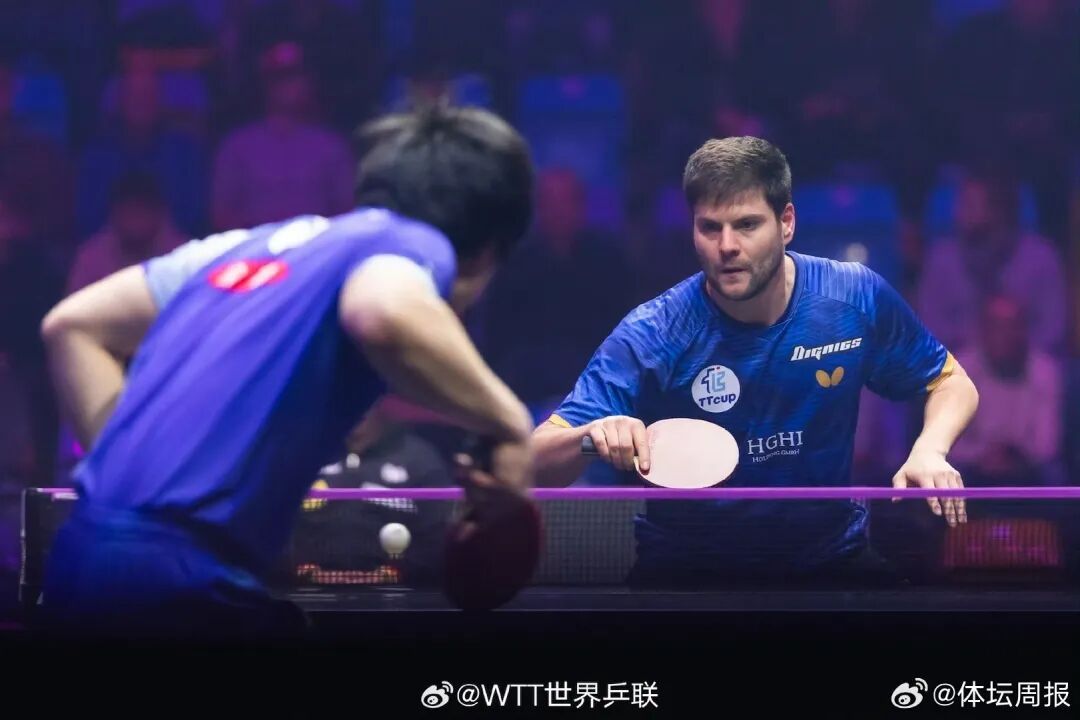 2025WTT法兰克福冠军赛男单1/8决赛,德国老将迪米特里·奥恰洛夫发挥出色,以3-1力克日本名将张本智和,时隔两年再度挺进WTT冠军赛八强。