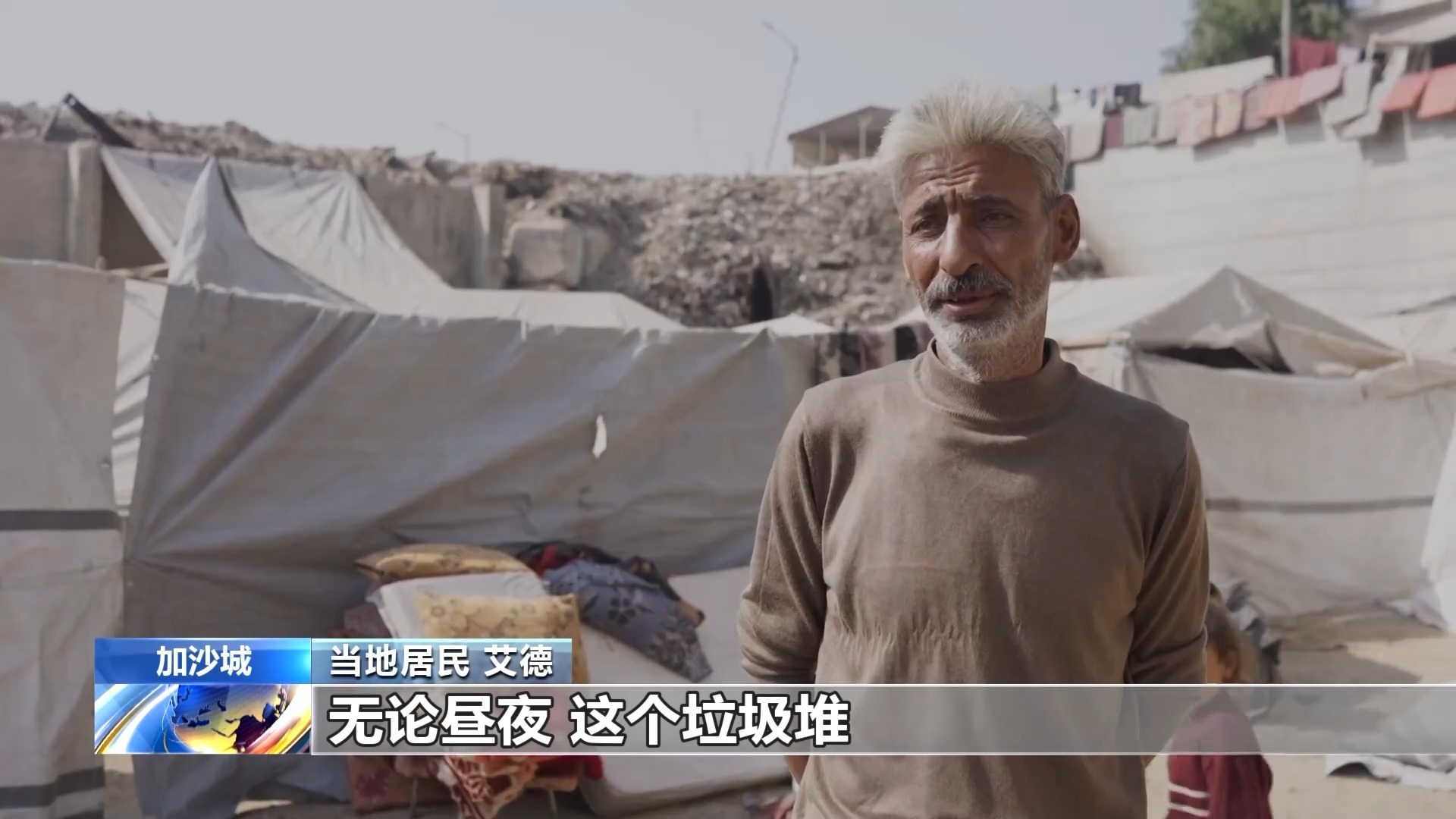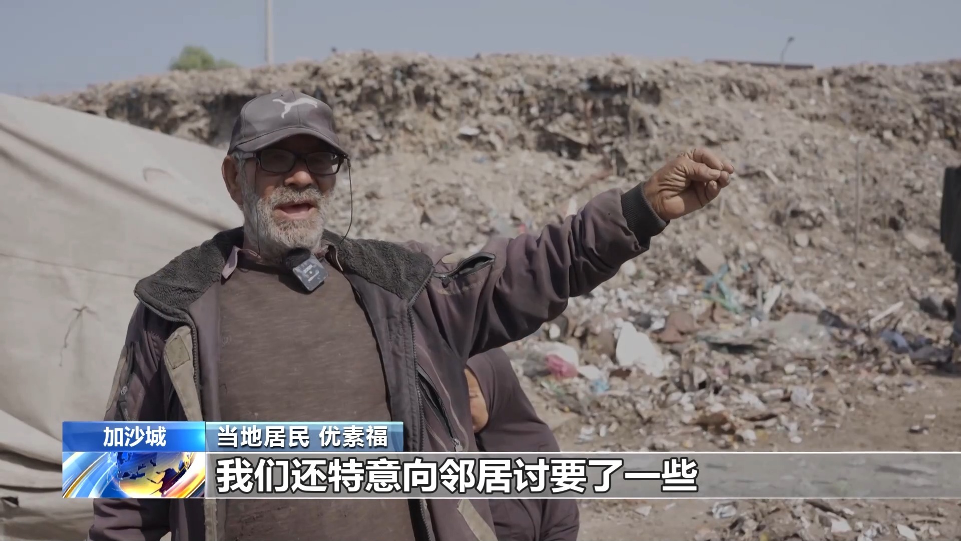 总台报道员 奥萨马:加沙市政部门在这里设立了一个巨大的垃圾堆放点,附近居住着大量家庭,同时这里还是一条主干道,每天都有大量市民经过。这个垃圾堆就位于加沙城市中心。目前,加沙市政府缺乏处置这些垃圾的能力,这里散发的恶臭让人难以久留。那些住在垃圾堆近旁,几乎与之为邻的居民状况可想而知。
