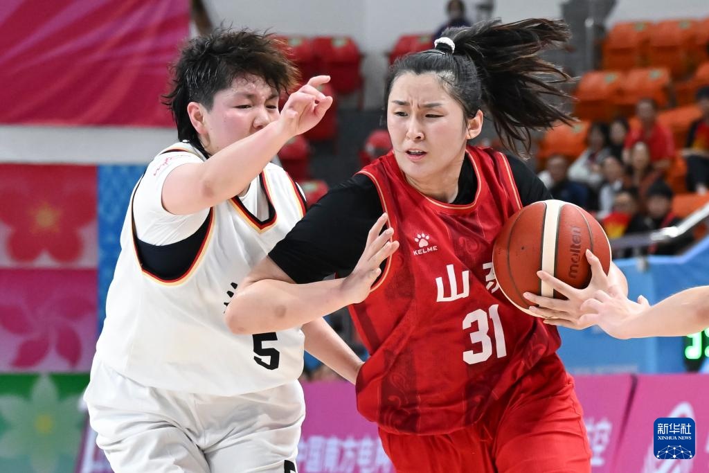 11月7日,山东队球员于嘉芮(右)在比赛中突破。