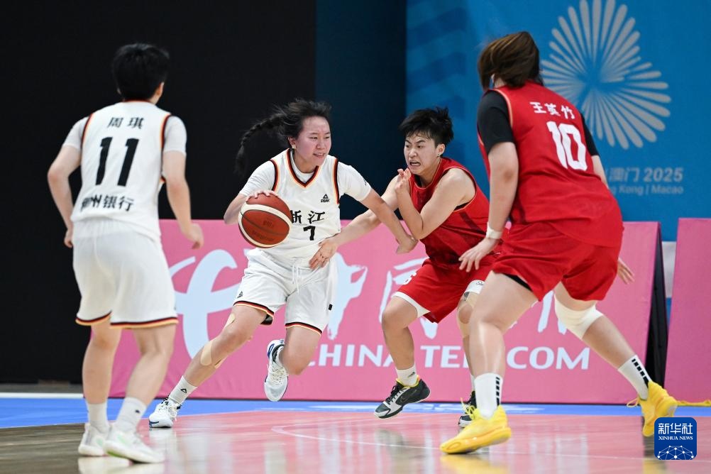 11月7日,浙江队球员张敏(中)在比赛中突破。