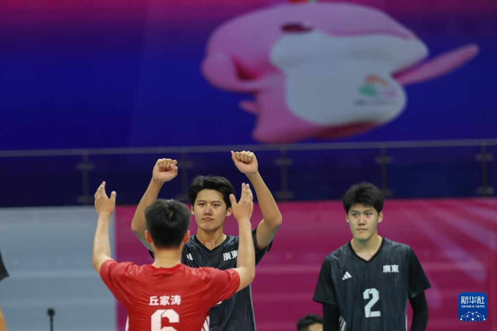 当日,在广州举行的第十五届全国运动会排球男子18岁以下组小组赛A组比赛中,广东队3比0战胜重庆队。