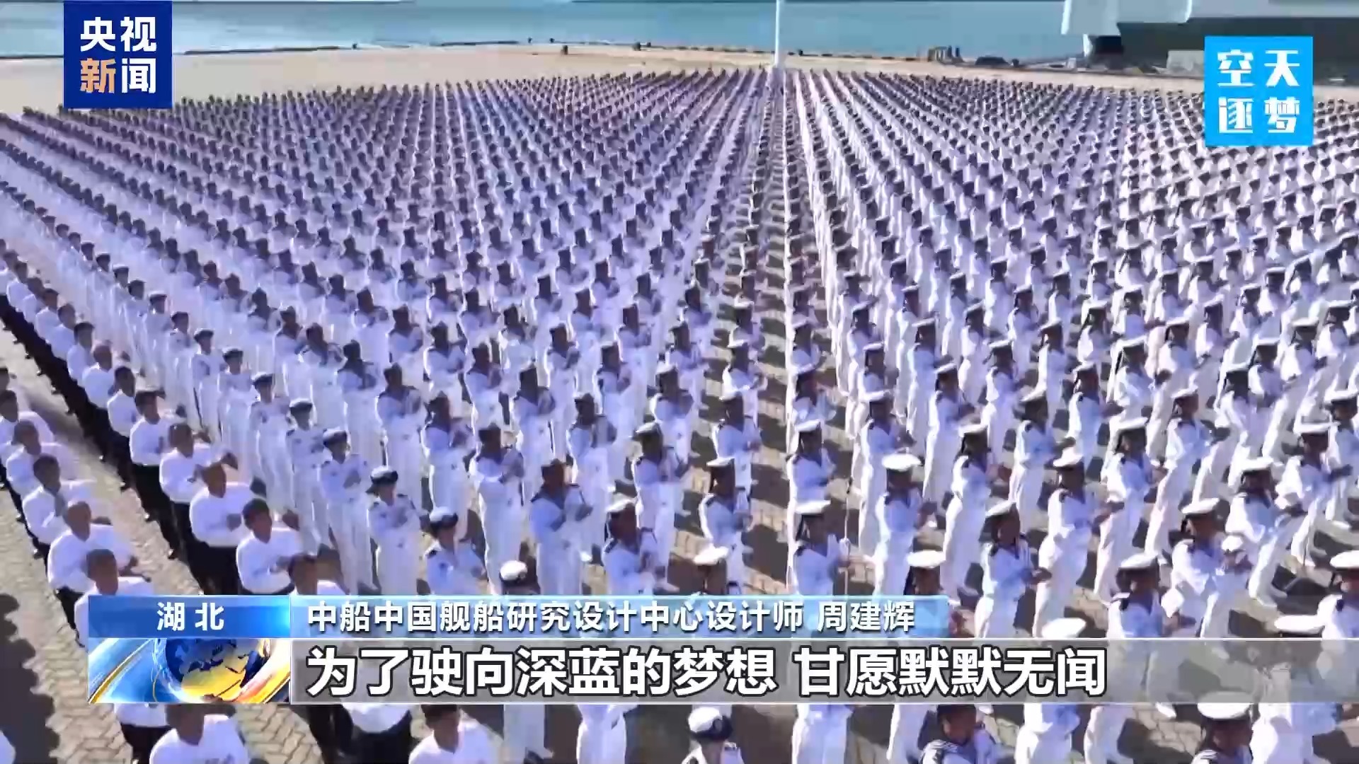 中船中国舰船研究设计中心设计师 周建辉:刚劲的风,经过船顶的桅杆,吹动五星红旗,拂向行注目礼的我们。隐姓埋名,淡泊明志,同舟共济,众志成城。为了实现深蓝的梦想,甘愿默默无闻。