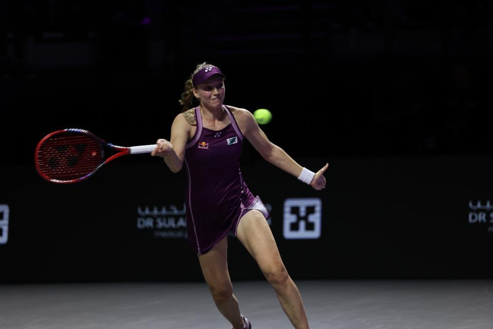 11月7日,在沙特阿拉伯利雅得进行的WTA年终总决赛半决赛中,哈萨克斯坦选手莱巴金娜2比1战胜美国选手佩古拉,晋级决赛。新华社记者 王海洲 摄