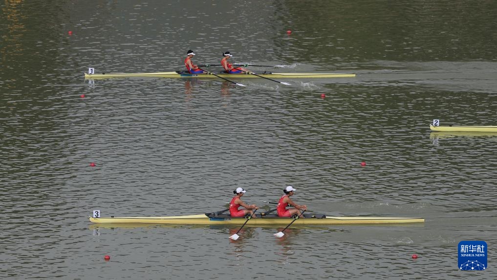 11月8日,参赛选手在女子双人双桨半决赛中。
