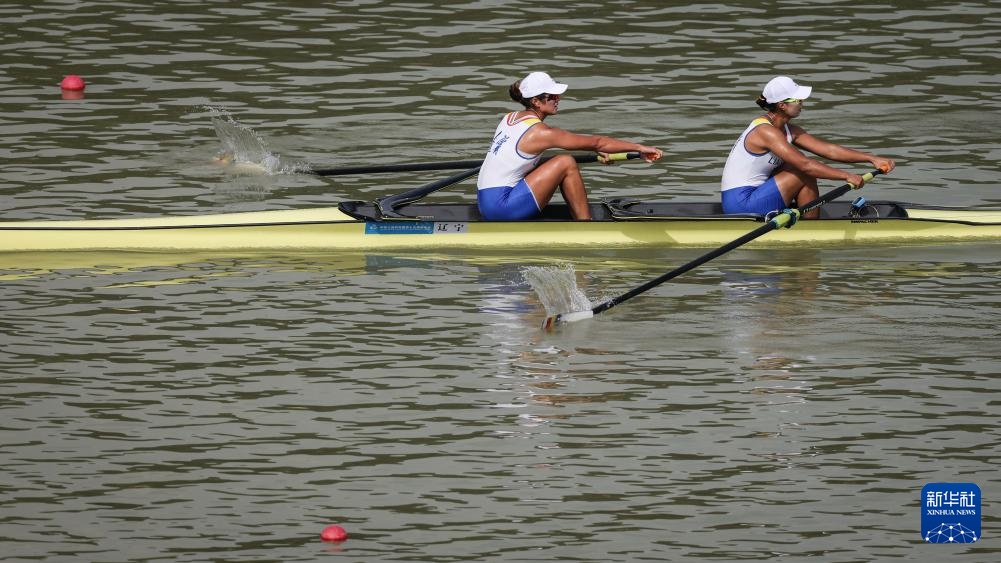 11月8日,江西队选手谢伶俐/张欣雨(下)和安徽队选手顾梦涵/李超然在女子双人双桨半决赛中,最终两队晋级决赛A。