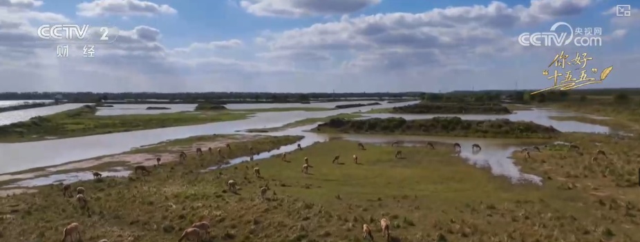当海水退去,潮汐树自由生长,天南海北的候鸟陆续抵达,空中的鸟浪与麋鹿拨开的水浪遥相呼应。