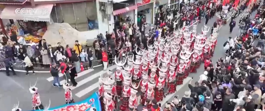 作为2025年苗年最重要的活动之一,非遗巡游展演队伍从雷山县一中出发,这也就意味着热热闹闹的苗年正式开始了。人们身穿多彩的节日盛装,载歌载舞欢庆苗年。