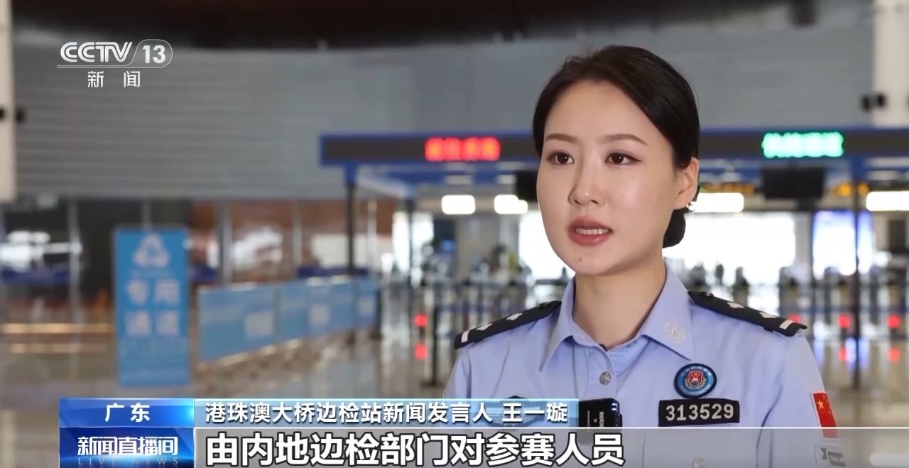 港珠澳大桥边检站新闻发言人 王一璇:赛事当天,由内地边检部门对参赛人员进行集中查验,确保符合条件人员及车辆可进入闭环区比赛,完成查验后,通行港澳口岸时,无需再停车接受查验,让比赛过程实现“无感通关”。