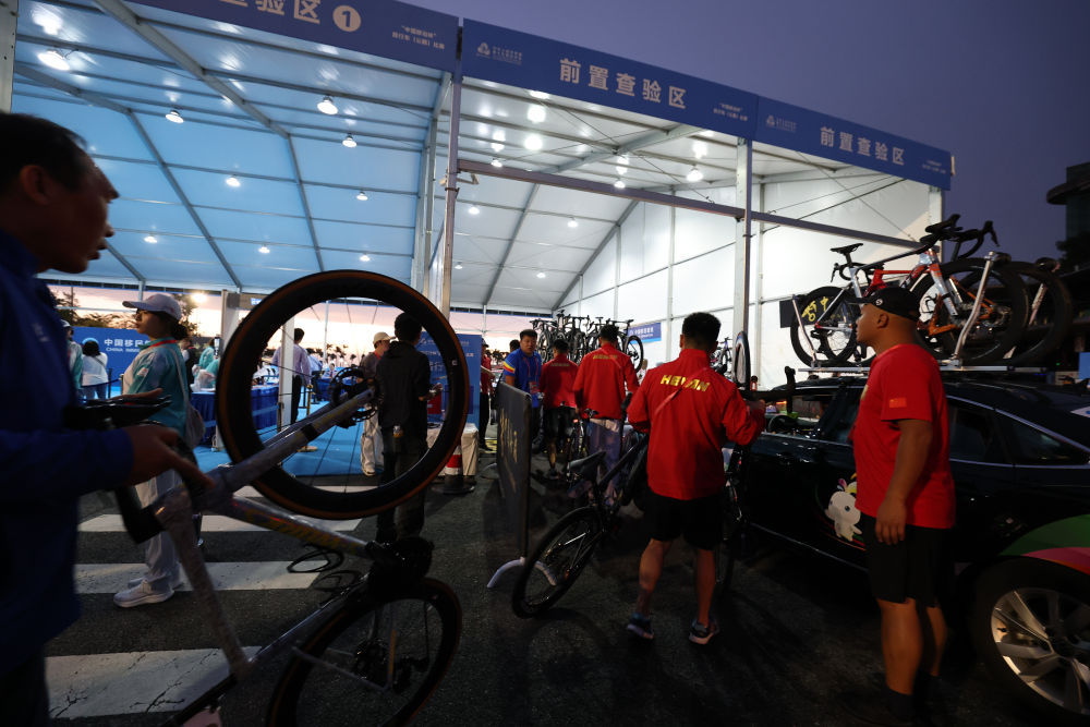 11月8日,参赛运动队车辆经过前置通关查验区。新华社记者 毛思倩 摄
