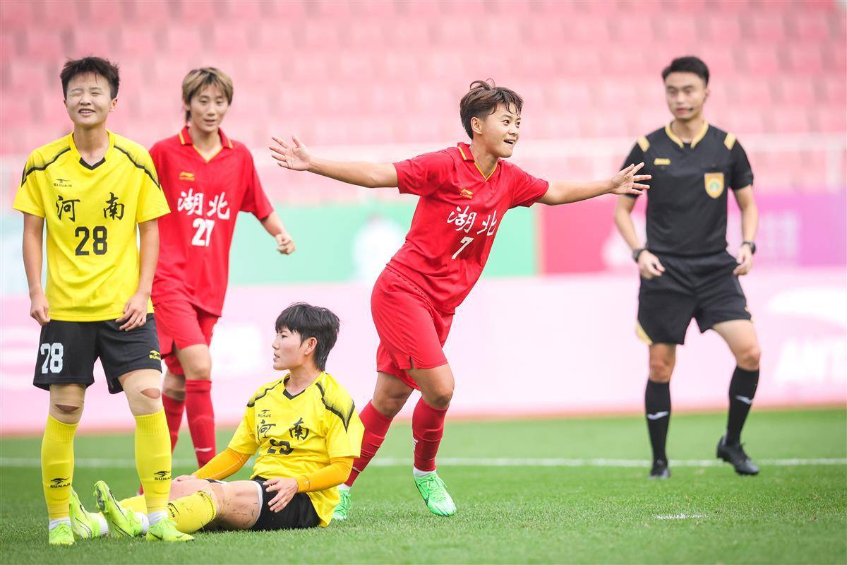 11月8日下午,佛山高明体育中心,第十五届全运会女足(成年组)小组赛迎来收官之战。湖北女足火力全开,凭借多名球员的出色发挥,以7比0大胜河南队,最终以小组第二挺进全运会八强。本场比赛,王霜、邓梦晔与唐涵三人“梅开二度”,代陈颖也斩获一球,全面展现了湖北队锐不可当的进攻实力。