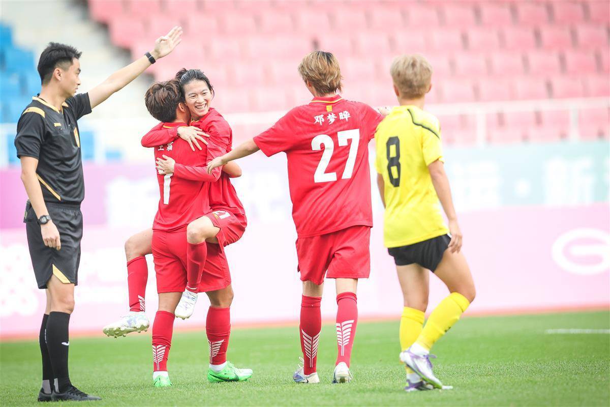 湖北队的进攻浪潮并未停歇。宋端两次精准的右路传中,先后助攻邓梦晔头球破门和王霜再下一城。随后姚伟右路突破至底线回传,邓梦晔接球后转身射门一气呵成。比赛未满25分钟,湖北队已有两名球员完成“双响”,以5比0早早锁定胜局。