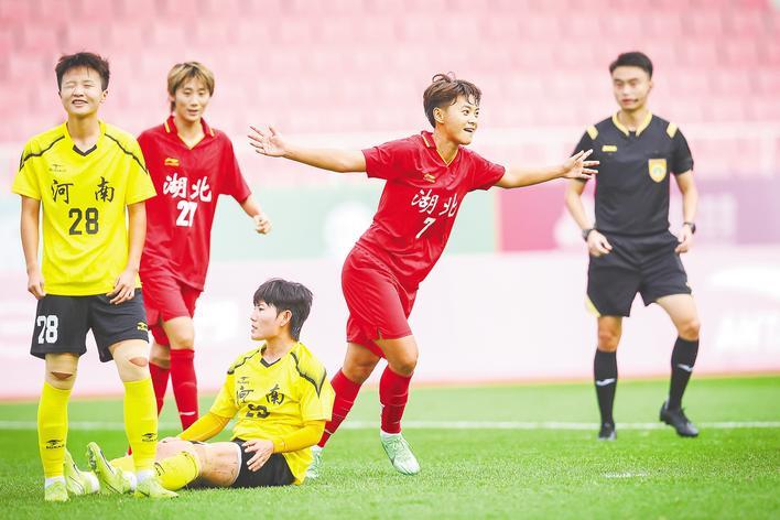 湖北日报讯 (记者胡雨薇)11月8日下午,在佛山进行的十五运会女足(成年组)小组赛收官战中,由王霜率领的湖北女足以7比0大胜河南队,最终以小组第二挺进八强。此役,王霜、邓梦晔与唐涵三人“梅开二度”,代陈颖也斩获一球,全面展现了湖北队锐不可当的进攻实力。