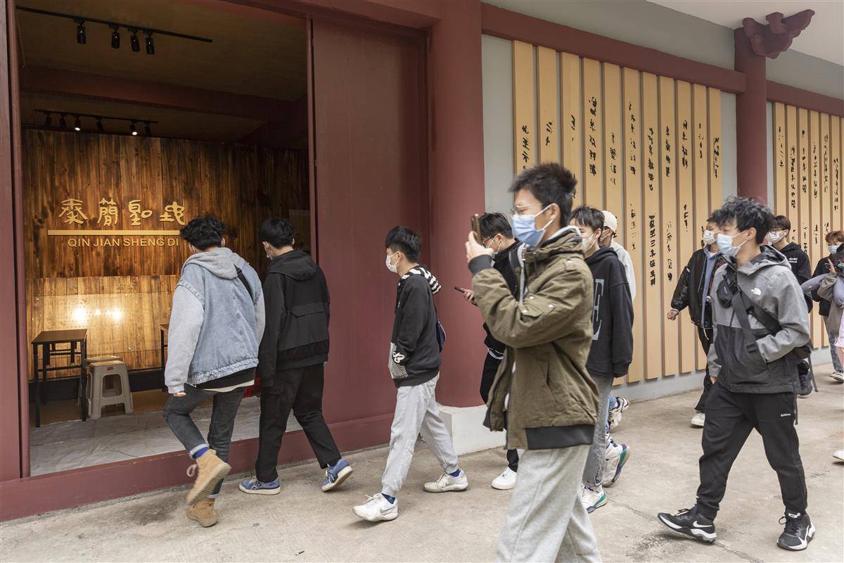 在睡虎地考古遗址参观的青少年(通讯员周亚雄摄)