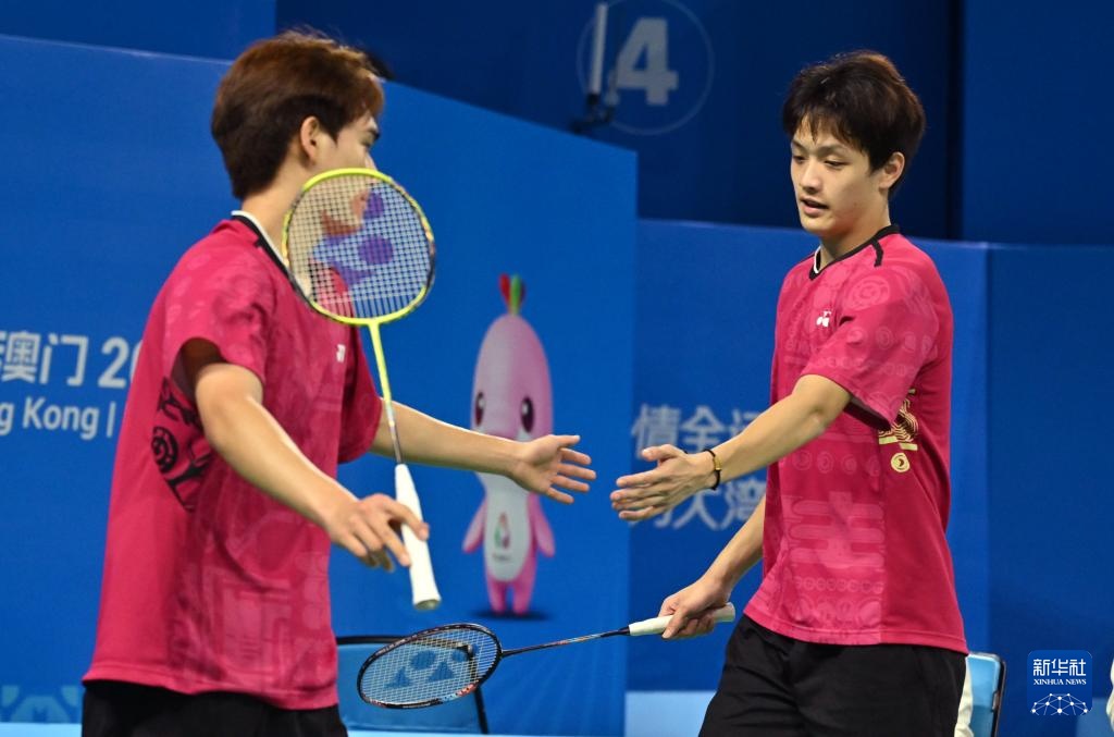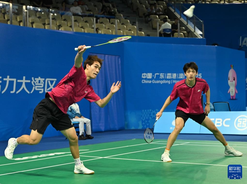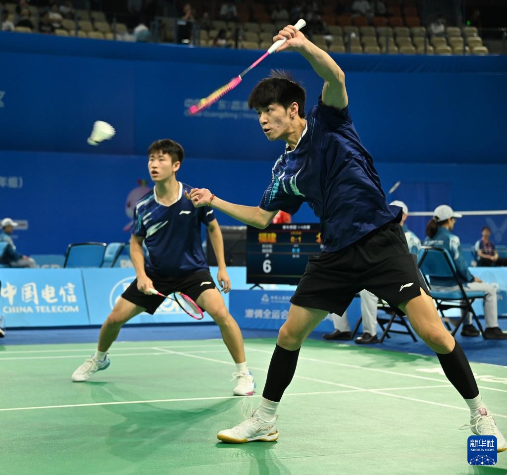11月8日,福建队组合陈永锐(右)/魏简真在男双比赛中。他们2比0战胜北京队组合张智晔/刘喆。最终,福建队2比3不敌北京队,无缘下一轮。