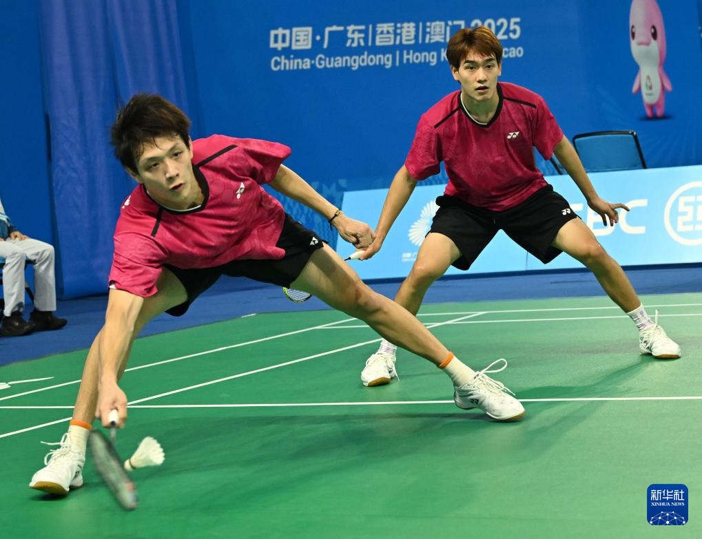 11月8日,北京队组合张智晔(左)/刘喆在男双比赛中。他们0比2不敌福建队组合陈永锐/魏简真。最终,北京队3比2战胜福建队,晋级下一轮。