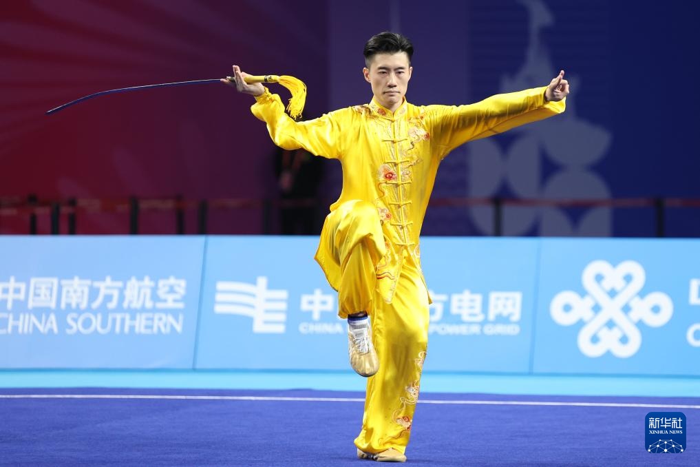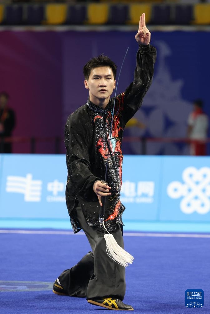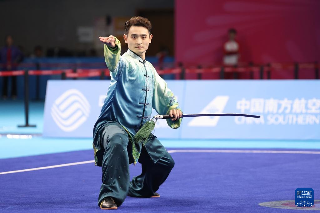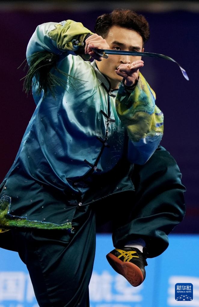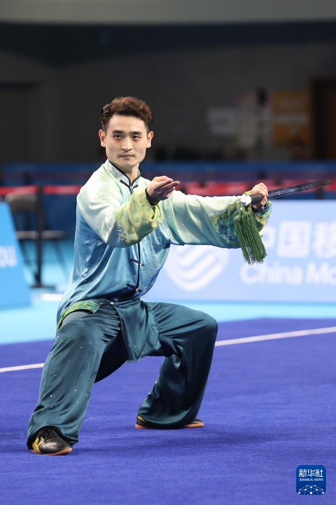 11月8日,山东队选手刘德文在男子太极拳太极剑全能项目太极剑比赛中。最终,他获得冠军。