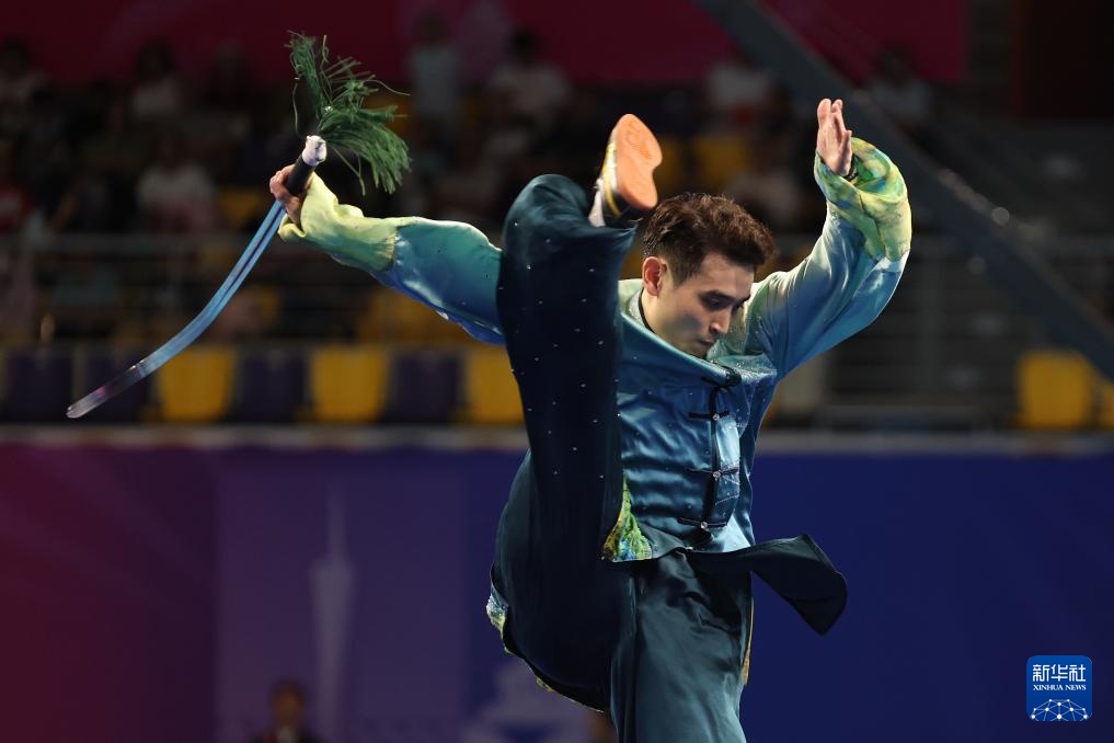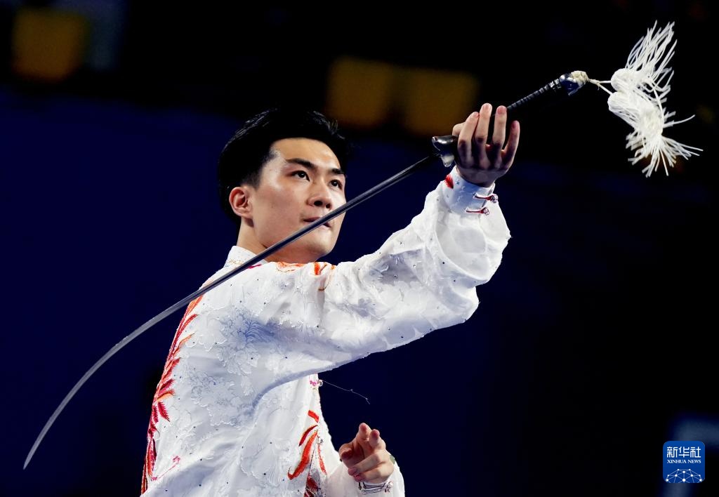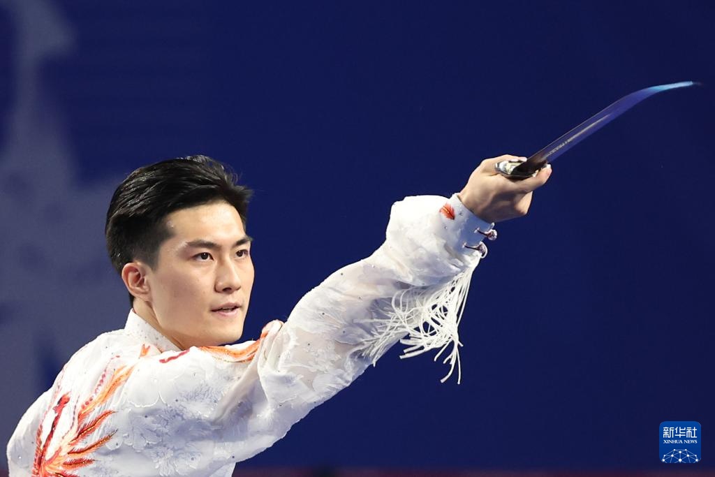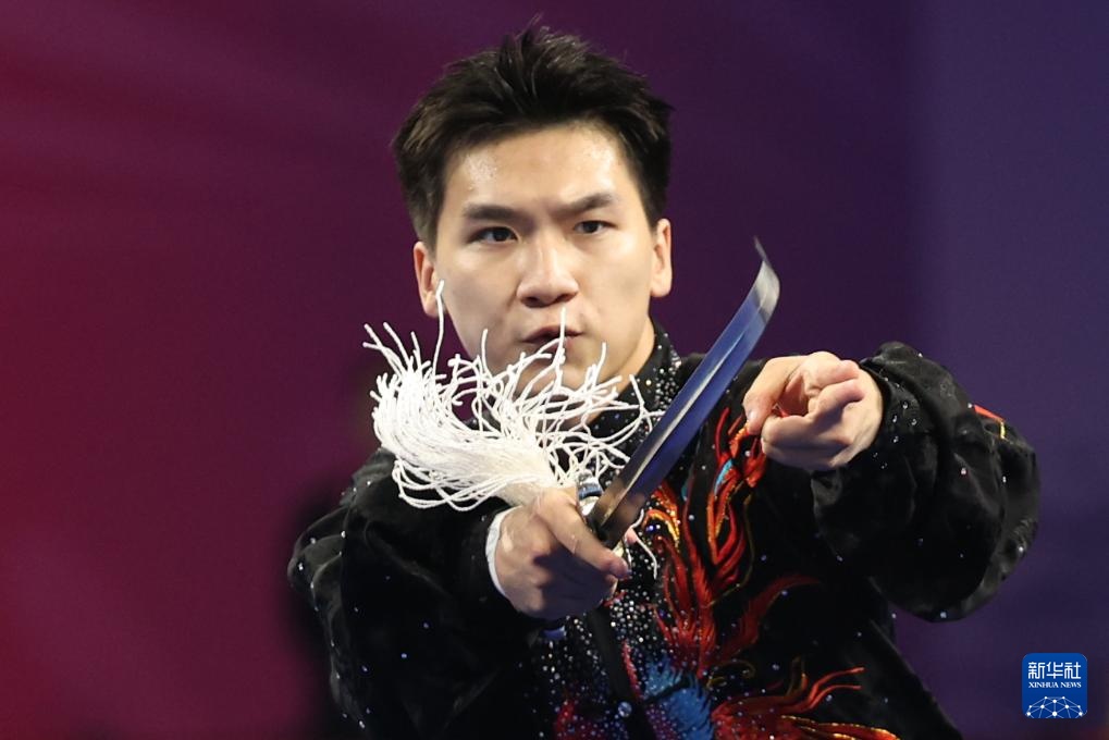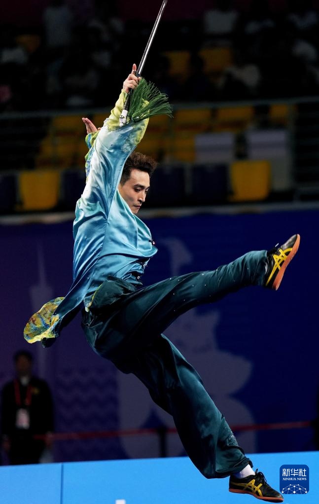 11月8日,山东队选手刘德文在男子太极拳太极剑全能项目太极剑比赛中。最终,他获得冠军。