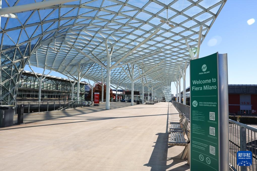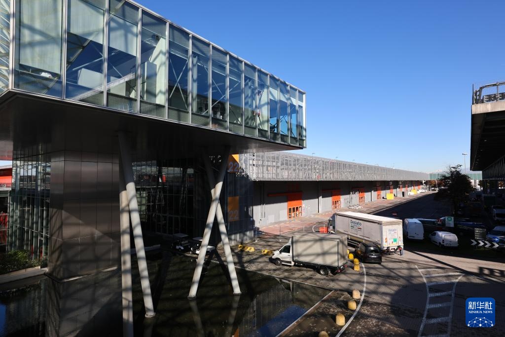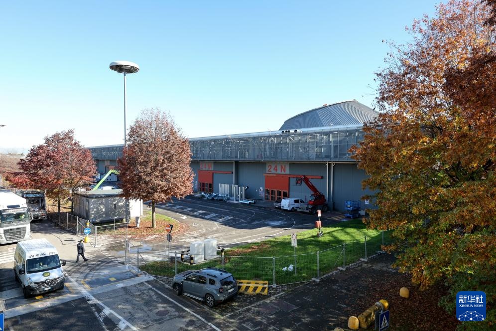 这是11月3日在意大利米兰拍摄的米兰国际会展中心。米兰-科尔蒂纳冬奥会速度滑冰与冰球场地位于该区域。