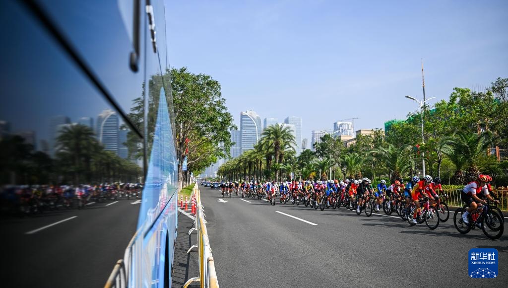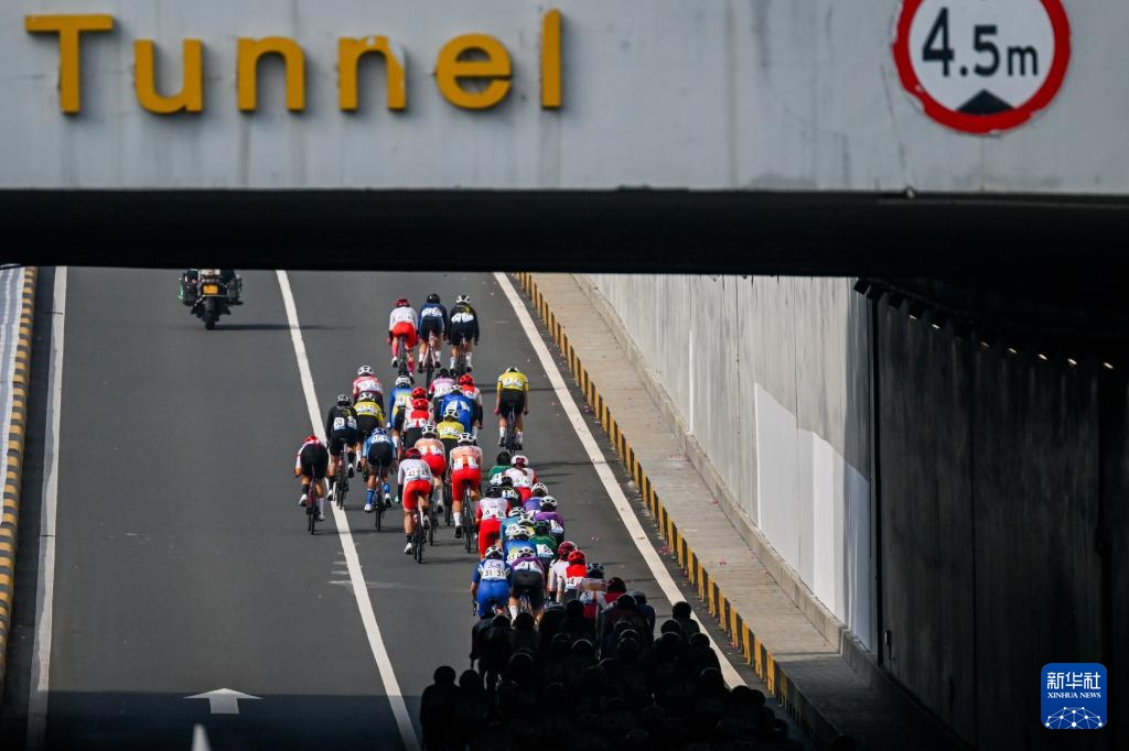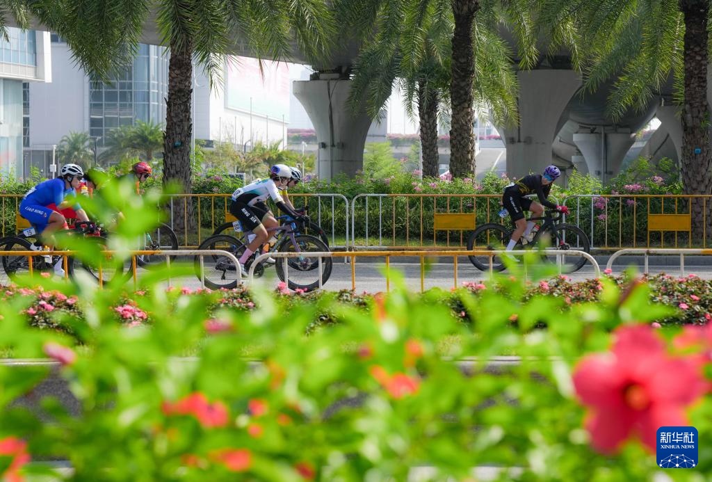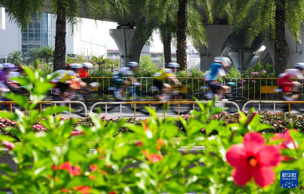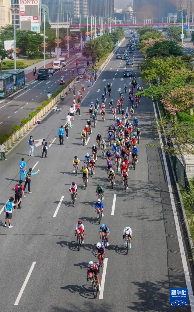 11月9日,参赛选手在比赛中途经横琴粤澳深度合作区的城市道路。