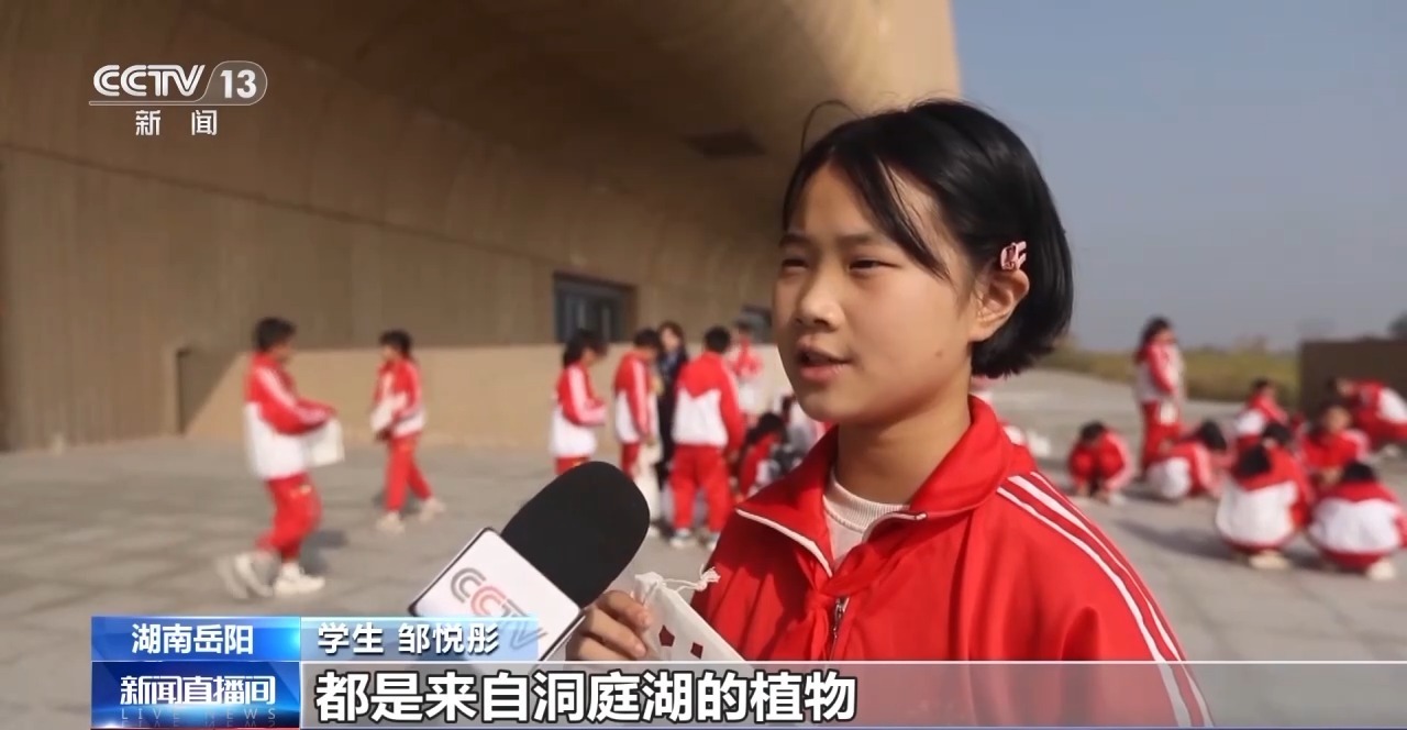学生 邹悦彤:都是来自洞庭湖的植物,让我感受到了洞庭湖的自然环境非常好,我觉得我会带动大家一起保护树木、保护植物,让自然环境更加美丽。