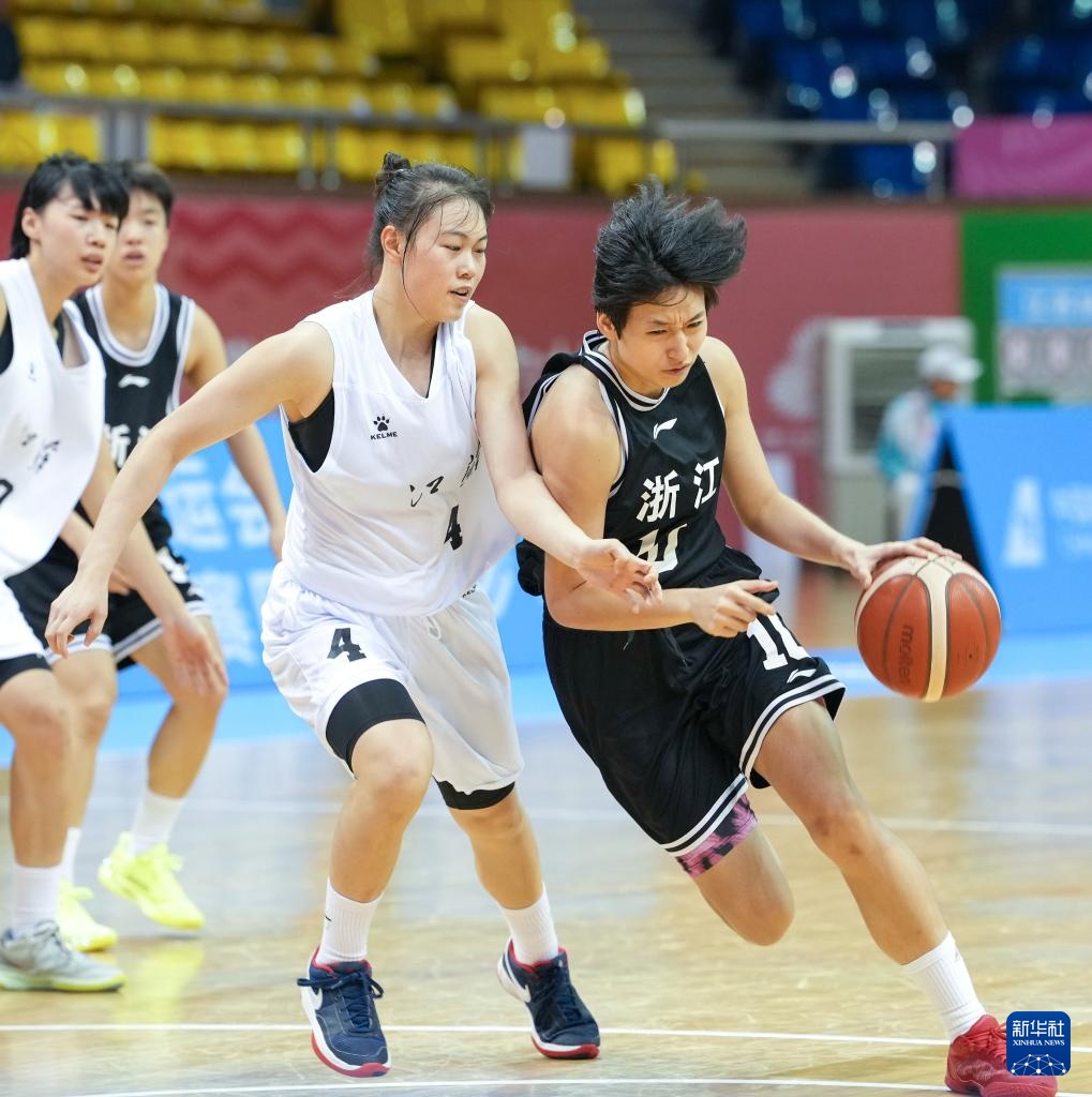 11月9日,浙江队球员陈怡嘉(右)在比赛中突破。