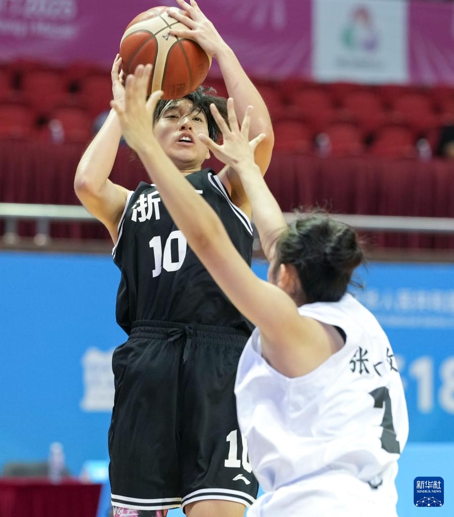 11月9日,浙江队球员陈怡嘉(上)在比赛中投篮。