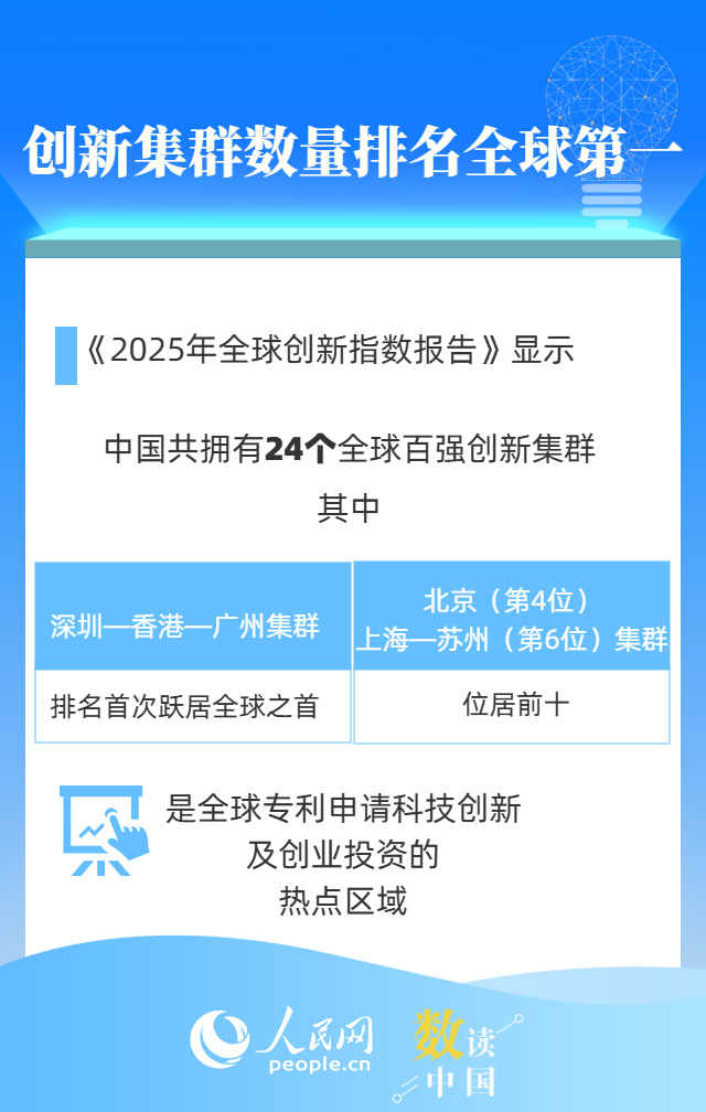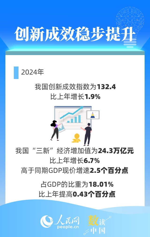 世界知识产权组织(WIPO)发布的《2025年全球创新指数报告》显示,中国排名提升至全球第10位,首次跻身全球前十;国家统计局日前发布2024年中国创新指数测算结果,2024年中国创新指数达到174.2,保持稳步增长态势。中国跑出创新“加速度”,一组数据来看。