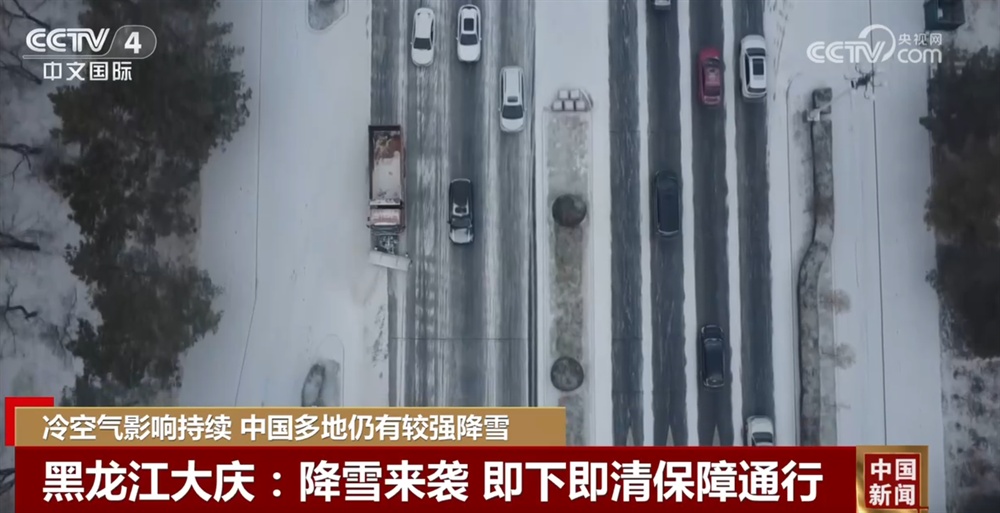 8日,黑龙江大庆市出现降雪,上午9点多,气象部门发布道路冰雪黄色预警。城区多条道路被积雪覆盖,过往车辆不得不放缓车速,小心通行。为此,城管部门增派人员和清雪设备,按照“雪下即动、即下即清”的原则,对全市主次干道的积雪展开清理。