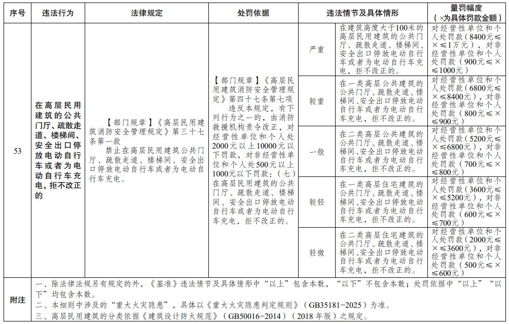 新规将纳入基准量化的53项消防安全违法行为,逐项明确“情节轻微、情节较轻、情节一般、情节较重、情节严重”5种情节的具体情形,并对应5个量罚区间,规范压缩裁量空间。同时推行“首违不罚”“轻微不罚”等包容审慎监管措施,对11类违法行为实施“首违不罚”,2类实施“轻微不罚。