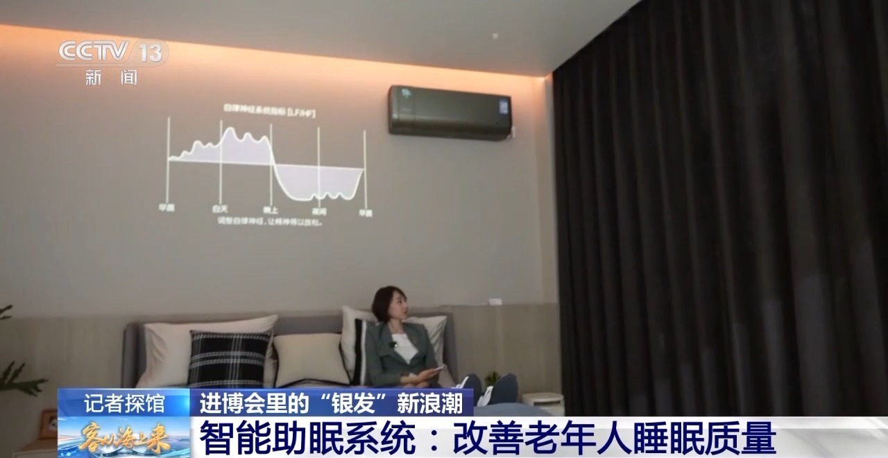 今年进博会上展出的一个卧室空间就是专门为银发一族打造的。房间里的智能系统可以联动光线、温度与空气,营造助眠氛围。