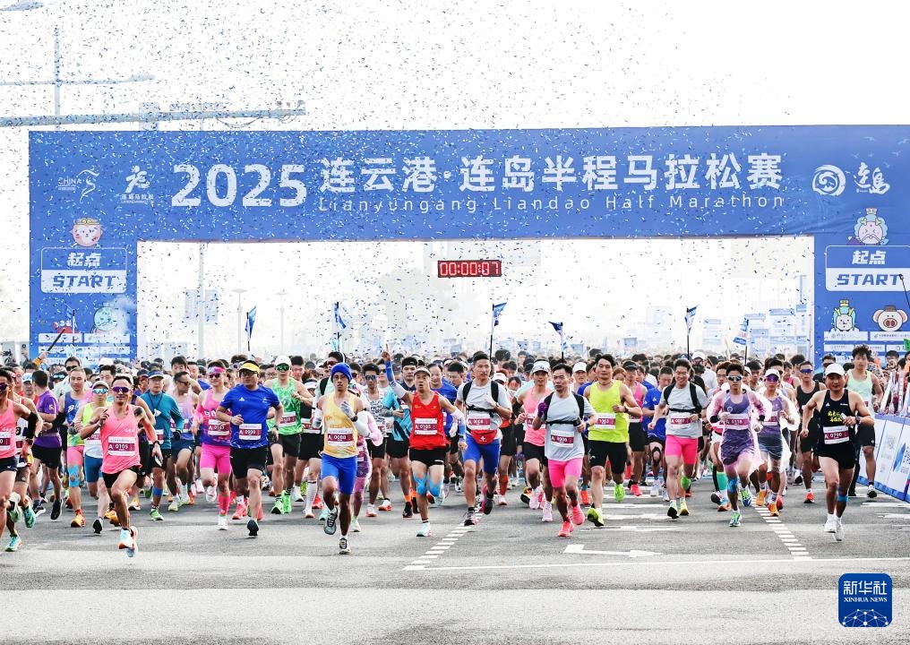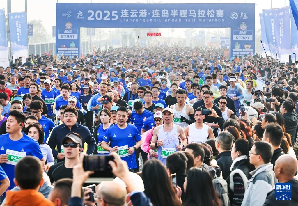 当日,2025连云港·连岛半程马拉松赛在江苏省连云港市鸣枪开跑。