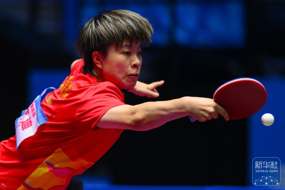 ↑ 辽宁队选手王艺迪在比赛中回球。
