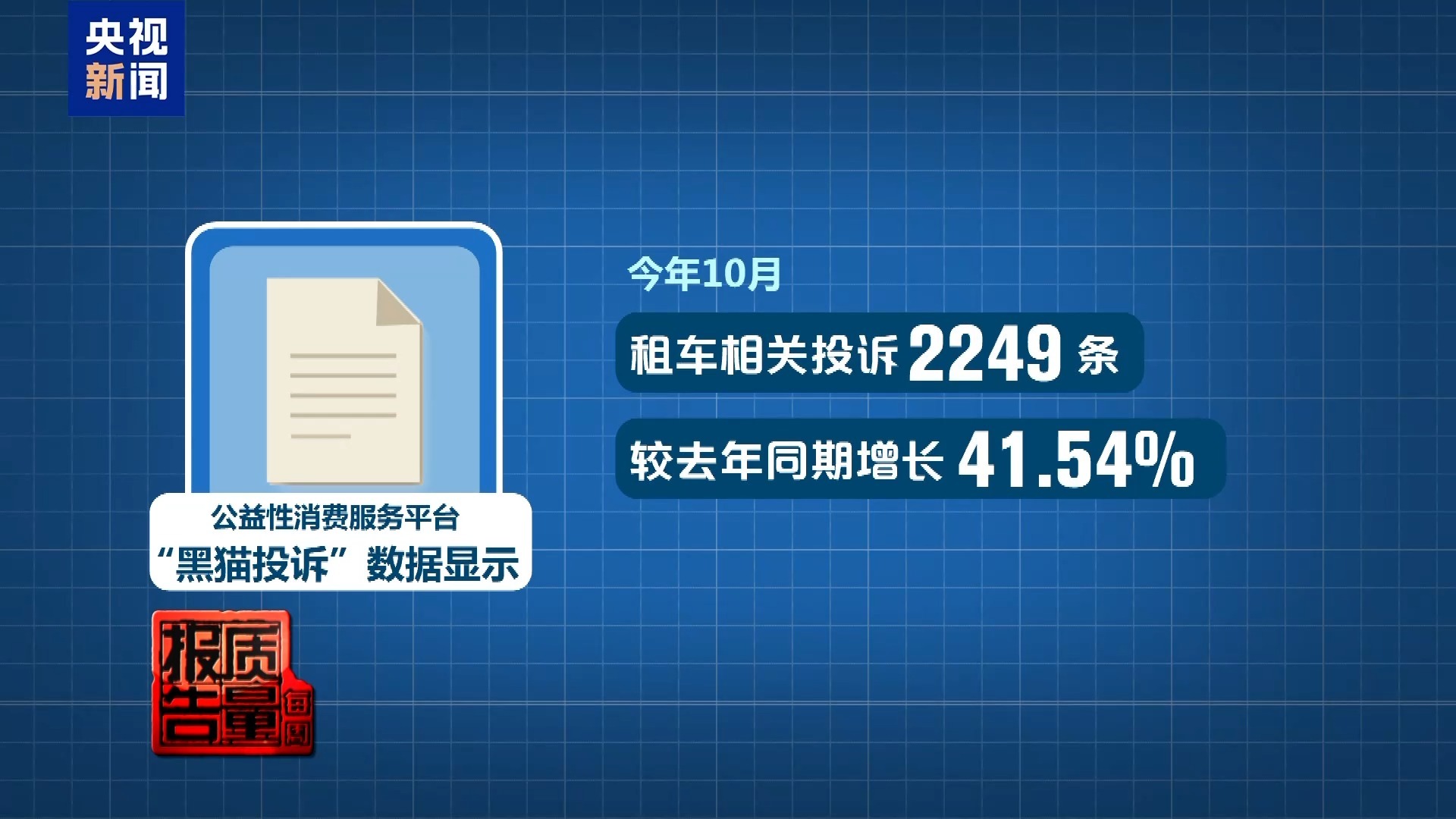 记者了解到,随着租车消费火热,近年来租车纠纷时有发生,公益性消费者服务平台黑猫投诉的分析数据显示,仅今年10月就有2249条投诉,较去年同期增长了41.54%。主要投诉商家涉及滴滴、哈罗、拍小租,一嗨租车和神州租车。