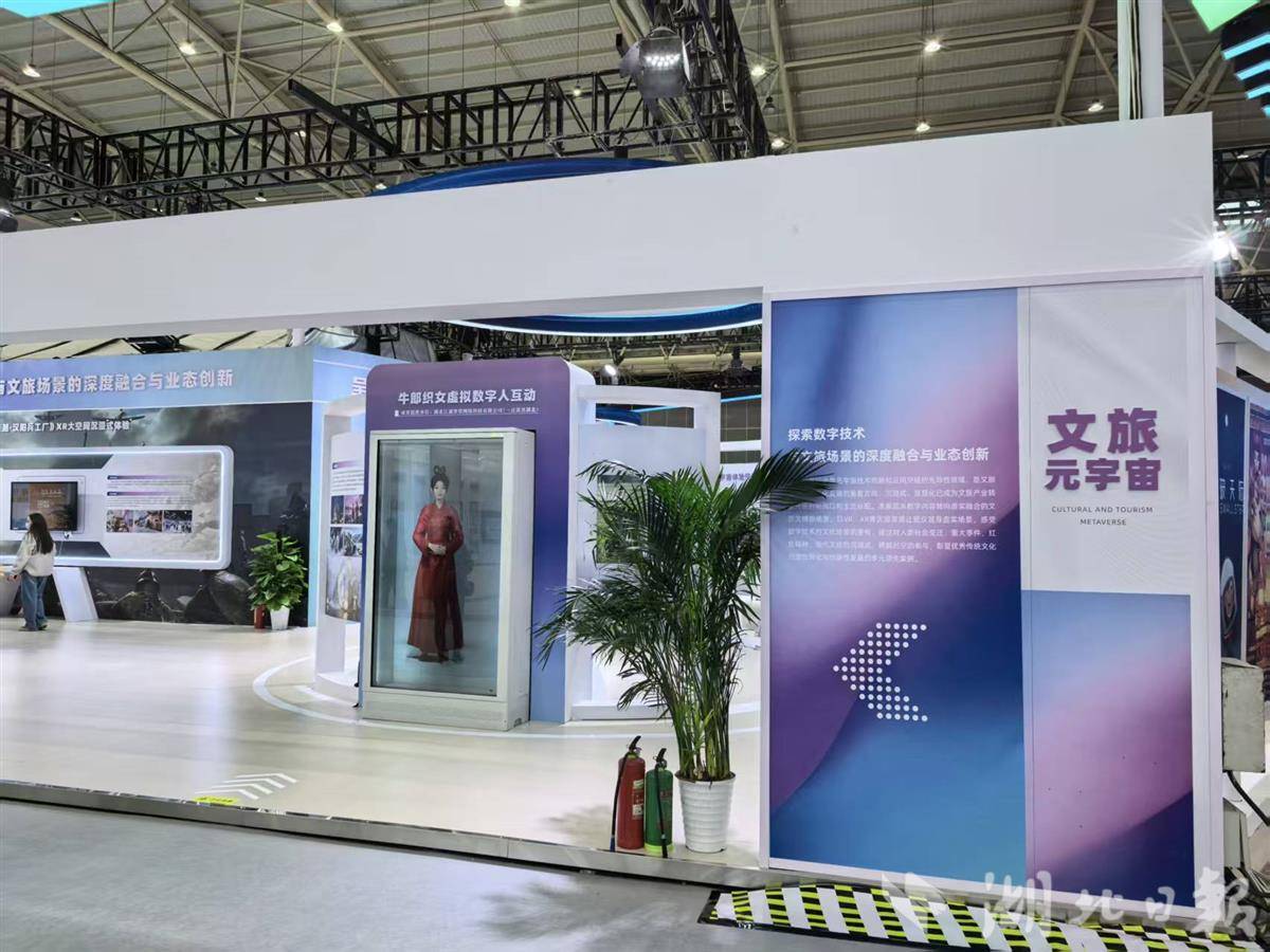 本届展览首次设立数字创意设计成果展与人工智能创意设计展,集中展示VR/XR、数字人等前沿科技在设计领域的创新应用。在文旅元宇宙展区,传统神话IP与现代数字技术的融合成果尤为亮眼。现场展出的牛郎织女虚拟数字代言人,将经典神话形象通过数字技术重构,借助全息舱等先进设备,为观众打造沉浸式、跨时空的互动体验,让观众直观感受优秀传统文化创造性转化与创新性发展的实践成果。据了解,该虚拟数字人是全国首个元宇宙“牛郎”“织女”虚拟数字恋人组合,由一点资讯湖北打造,于2023年郧西天河七夕文化旅游节上正式发布。