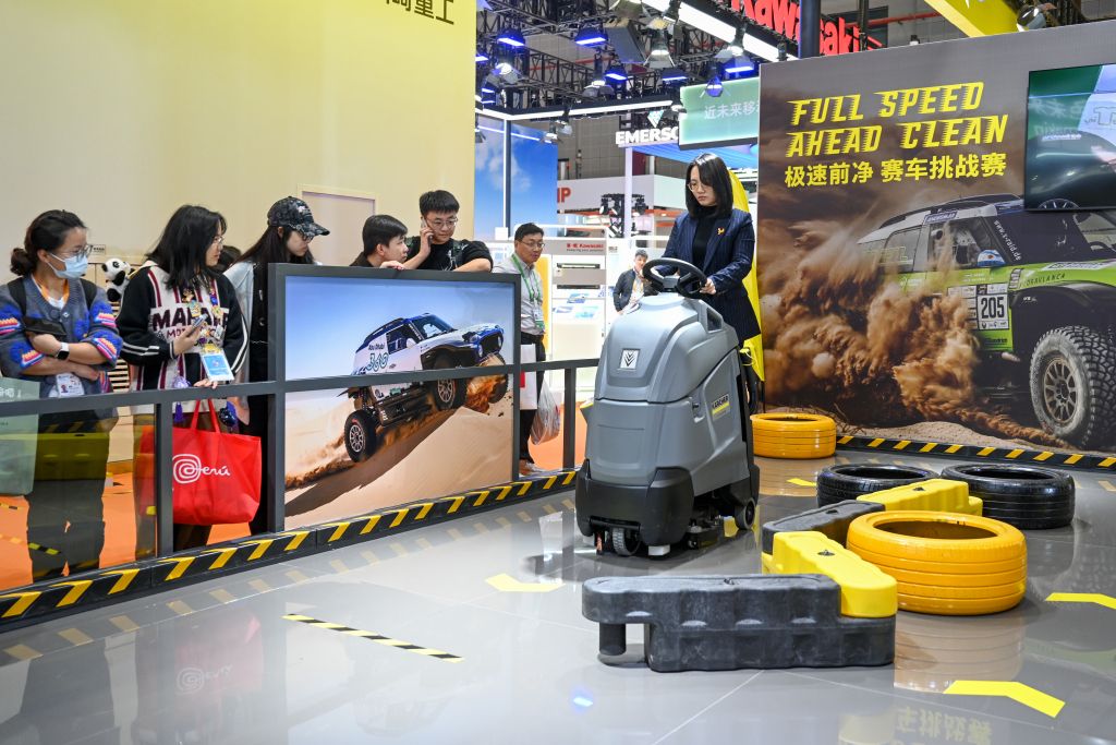 观众在体验卡赫站立式洗地机,直观感受产品的性能和操控体验。澎湃新闻记者 朱伟辉 图