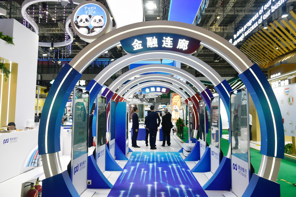 11月9日拍摄的第八届进博会服务贸易展区的一处展位。新华社记者 鲁鹏 摄