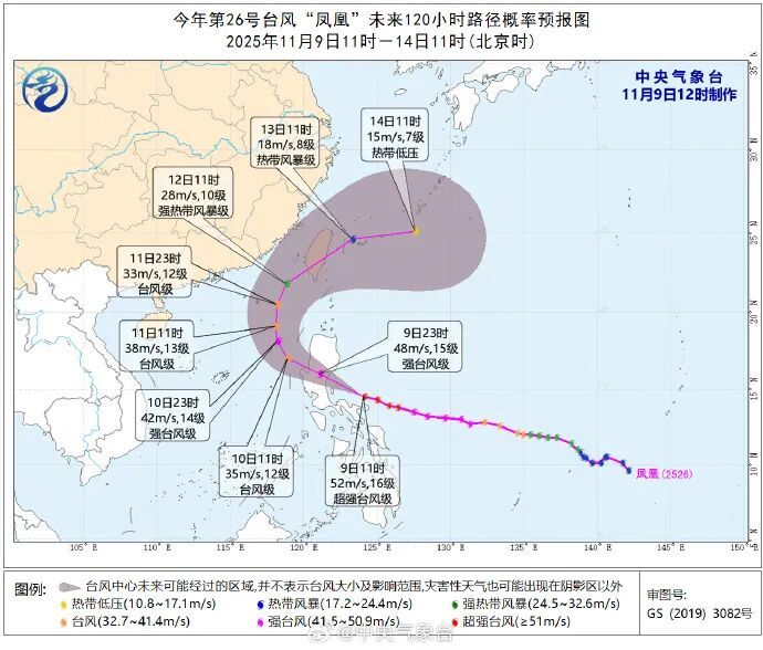 预计,“凤凰”将以每小时30公里左右的速度向西偏北方向移动,今天夜里在菲律宾吕宋岛东部沿海登陆,登陆前强度变化不大或略有增强,穿过吕宋岛后强度明显减弱,将于10日中午前后移入南海,之后强度将有所增强,10日傍晚前后进入福建省台风警戒区。