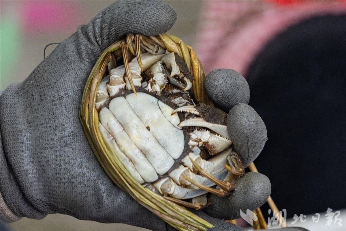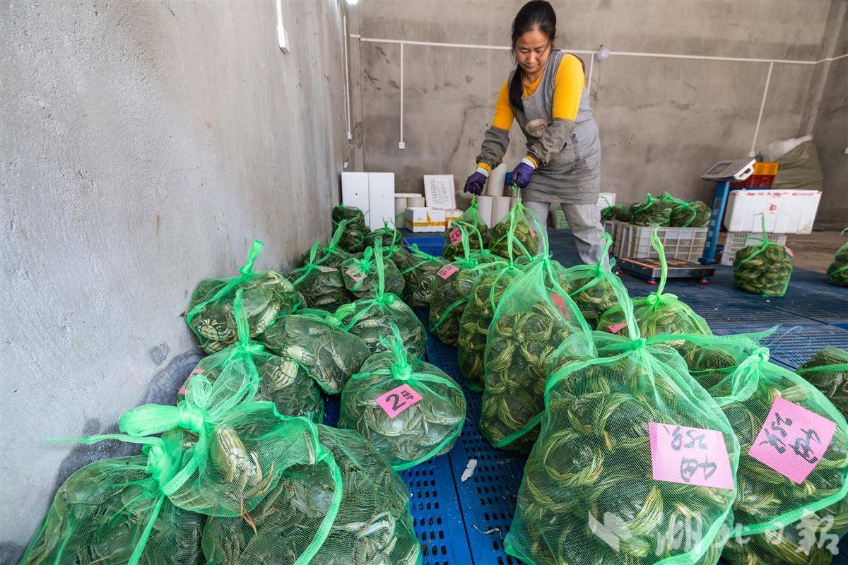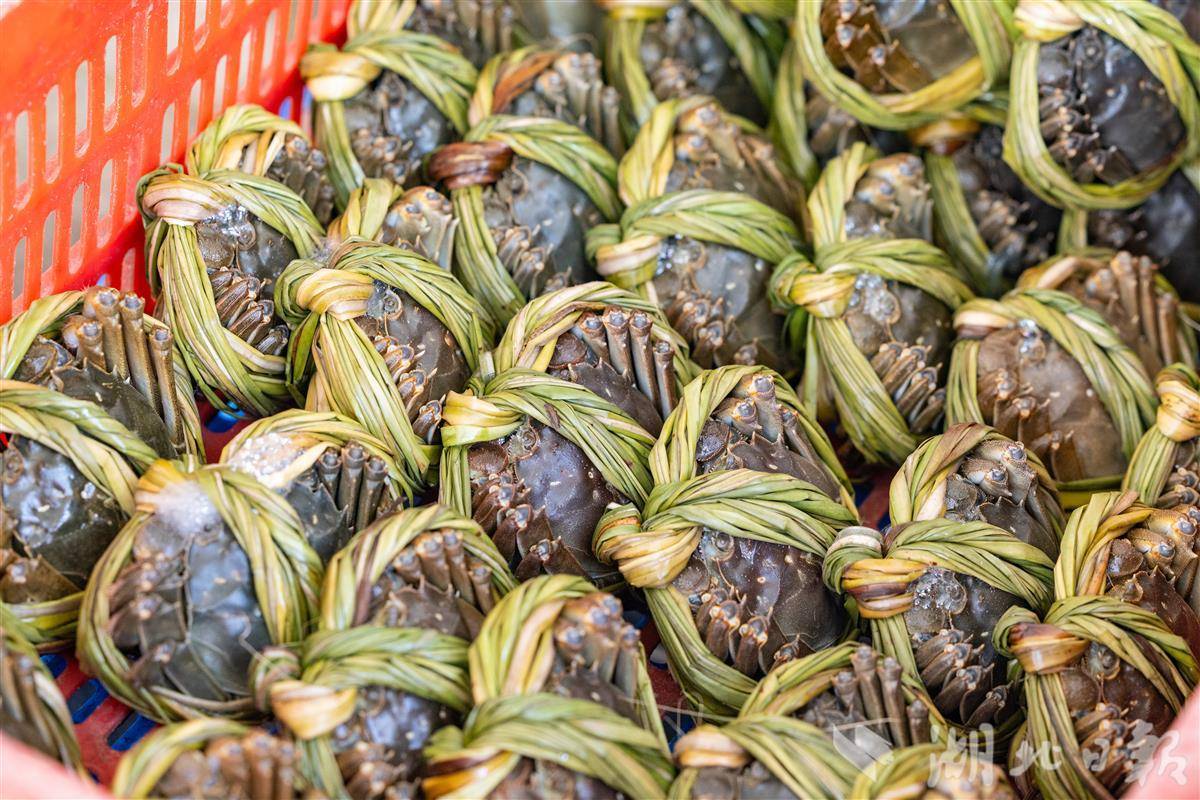 2025年11月5日,在中国虾谷汉川水产大市场内,各家商户们正忙着绑螃蟹、打包发货。据现场商户介绍目前正是销售旺季,每天精品螃蟹能卖出4000只。作为“中国河蟹之乡”的汉川,近年来将河蟹产业作为农业转型升级的核心抓手,构建起“水产市场+电商平台+公司+合作社+基地+农户”的全产业链体系。今年,汉川河蟹养殖面积已达32.74万亩,年产量4.43万吨,预计产值达60亿元,同时,汉川出台多项举措促进河蟹出口,计划今年实现300吨的出口目标,推动汉川特色农产品走向世界。(湖北日报全媒记者 倪娜 通讯员 尹青 摄)