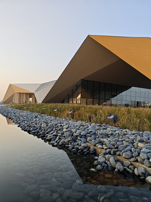 沉湖国际小镇的展陈秉持“最小干预、最成自然”的理念,在不干扰生态的前提下,打造了会议中心、展创艺术空间等核心载体,由隈研吾、华黎等国际大师联袂设计。会议中心的空中连廊既有保障功能,又为鸟类预留迁徙通道;屋顶“生态滤网”实现雨水循环,还能成为候鸟临时驿站。