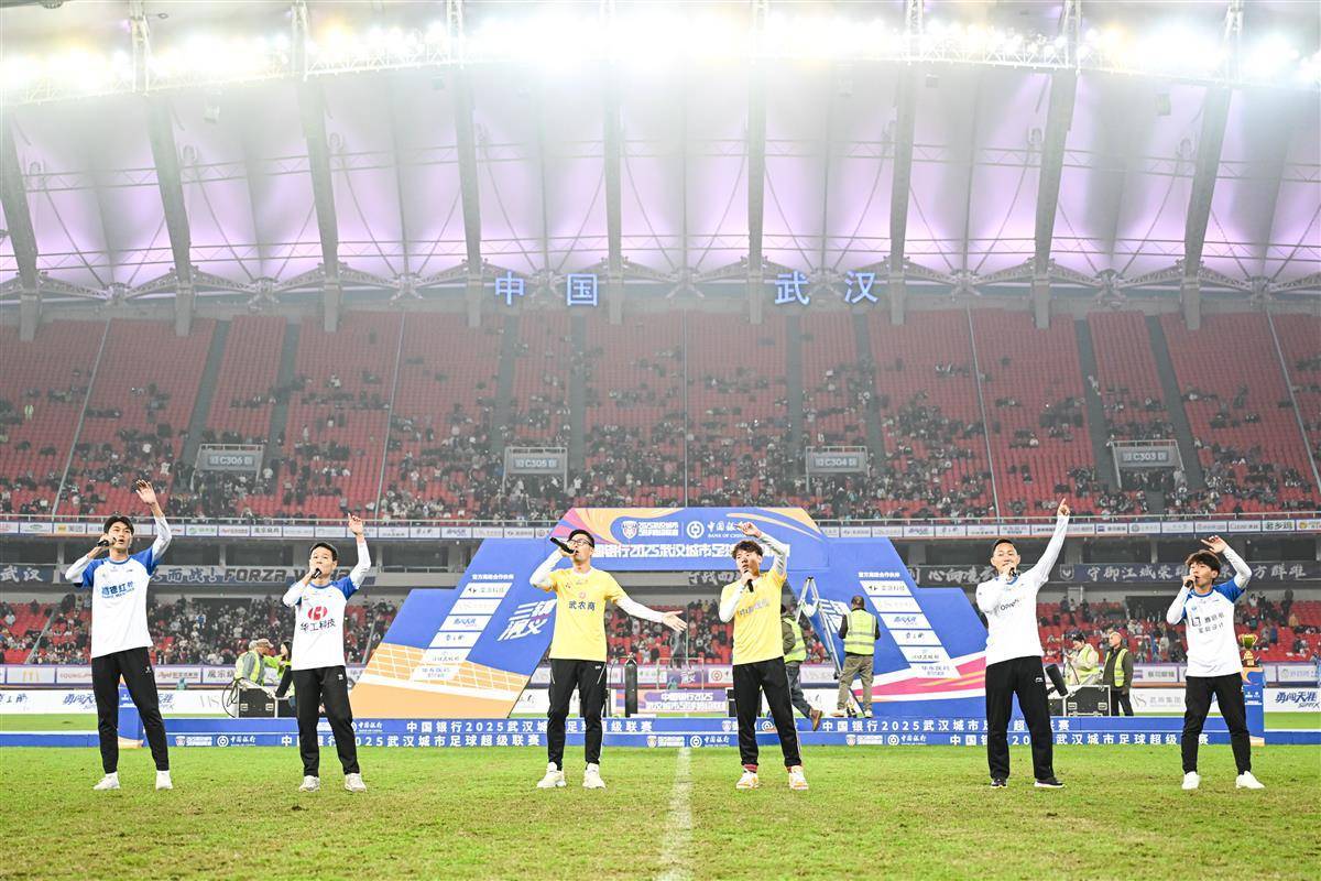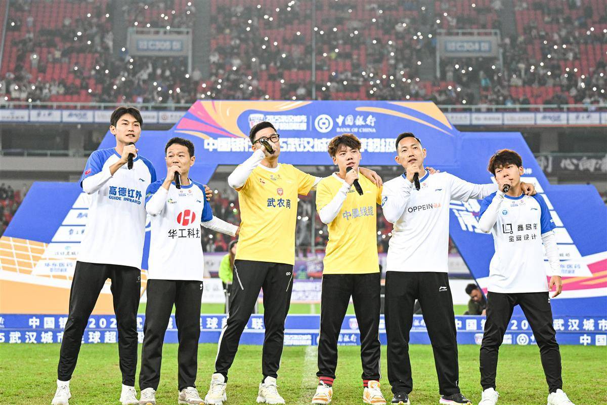 11月9日,“汉超”球员代表献唱歌曲《真心英雄》。(湖北日报全媒记者 任勇 通讯员 宋善金 黄弋珂 摄)
