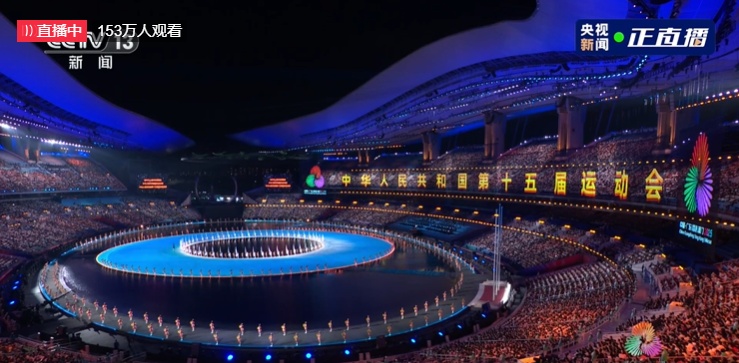 11月9日晚,第十五届全运会开幕式在广东奥体中心举行。