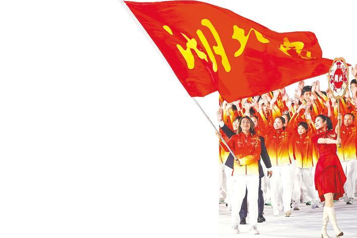 湖北体育代表团入场。 (湖北日报全媒记者 时龚 摄)