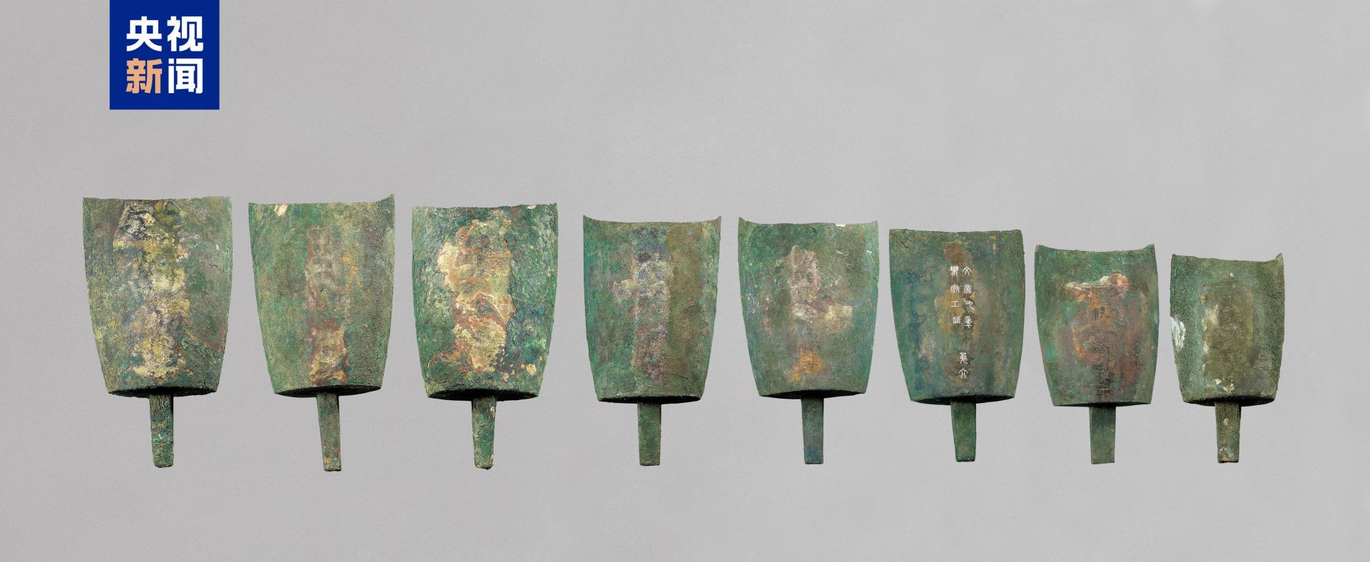 △青铜句鑃,收藏于广州南越王博物院。据院副研究馆员黄巧好介绍,这套青铜句鑃有四个典型特点:①出土句鑃中体形最大;②南越国自铸;③宫廷中实用乐器;④目前所见唯一的西汉时期青铜句鑃。