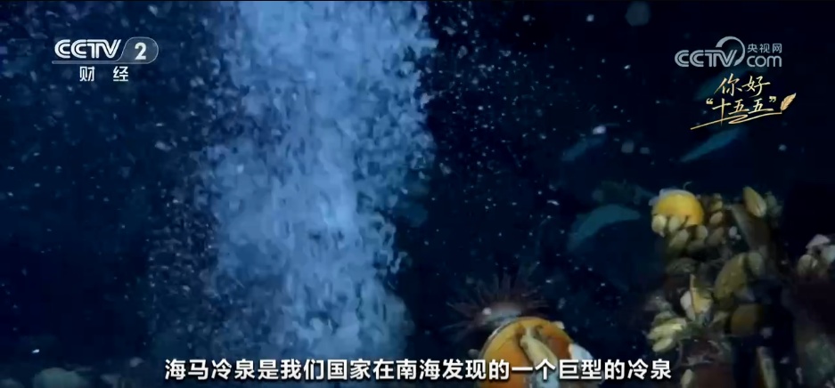 中国地质调查局广州海洋局三亚所天然气水合物室副主任 张伟:海马冷泉是我们国家在南海发现的一个巨型的冷泉,它是与可燃冰伴生的一种指示标志。可燃冰的全球储量是巨大的,它是石油、煤炭和天然气这种资源量的2倍,被公认为一种未来的替代能源。
